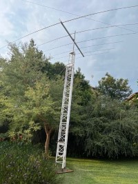 Around 14-15m high tower when fully extended. Fixed section around 9m tall. One electric winch included. Includes rotator (no control box) and antennas as seen on the photo.