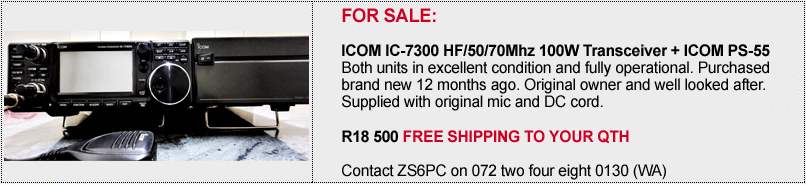 Trading hams - with no personal website - when advertising imports or NOS with South African pricing, are to avoid the commercial spreads of that equipment and instead furnish main specifications, an indicative photo plus a link to the equipment site if available. Second hand items should be photographed in their current state and described as usual.